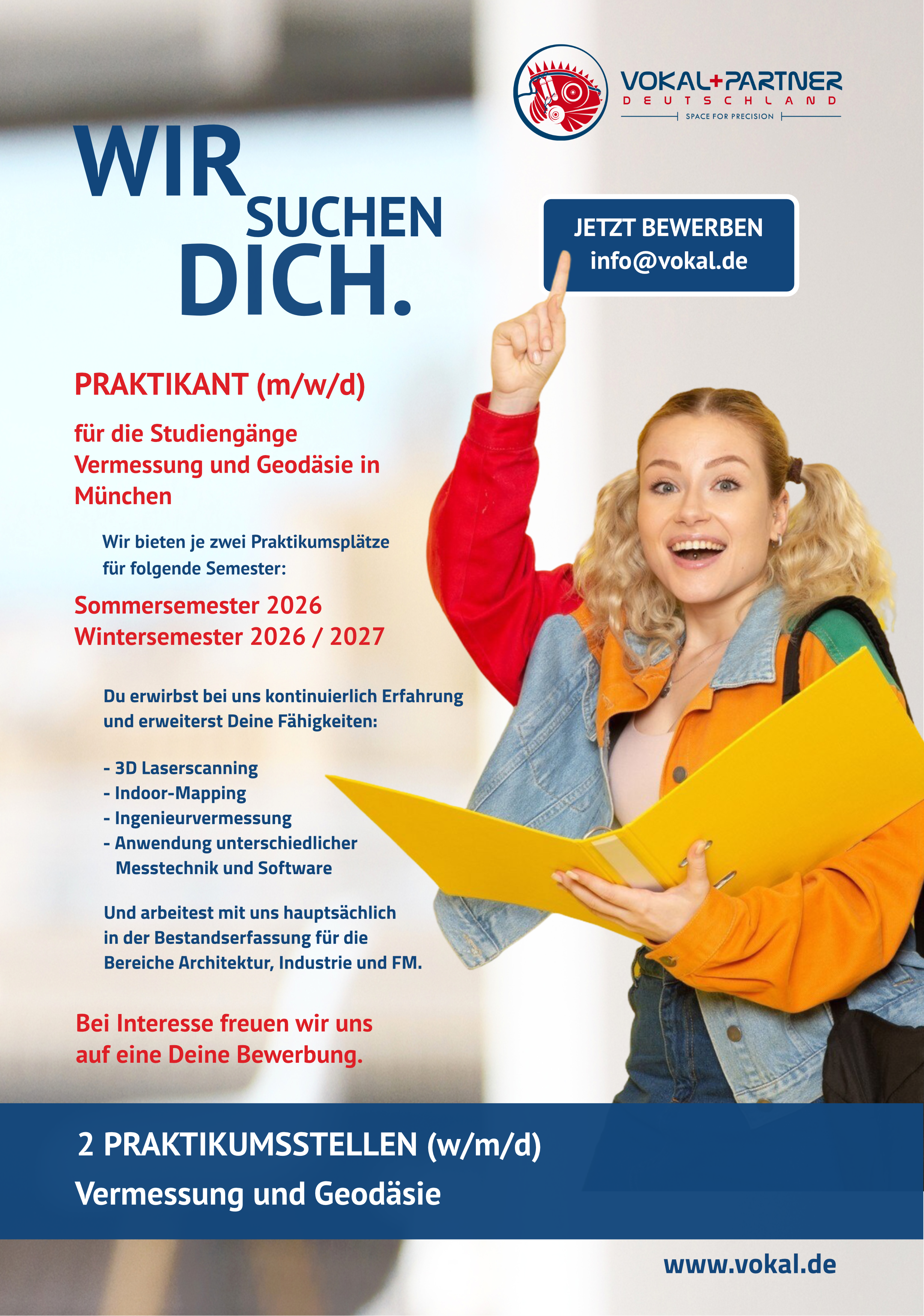 | 26.02.2026 | 2 Praktikumsstellen Vermessung und Geodäsie Vokal + Partner Beratende Ingenieure mbB | |